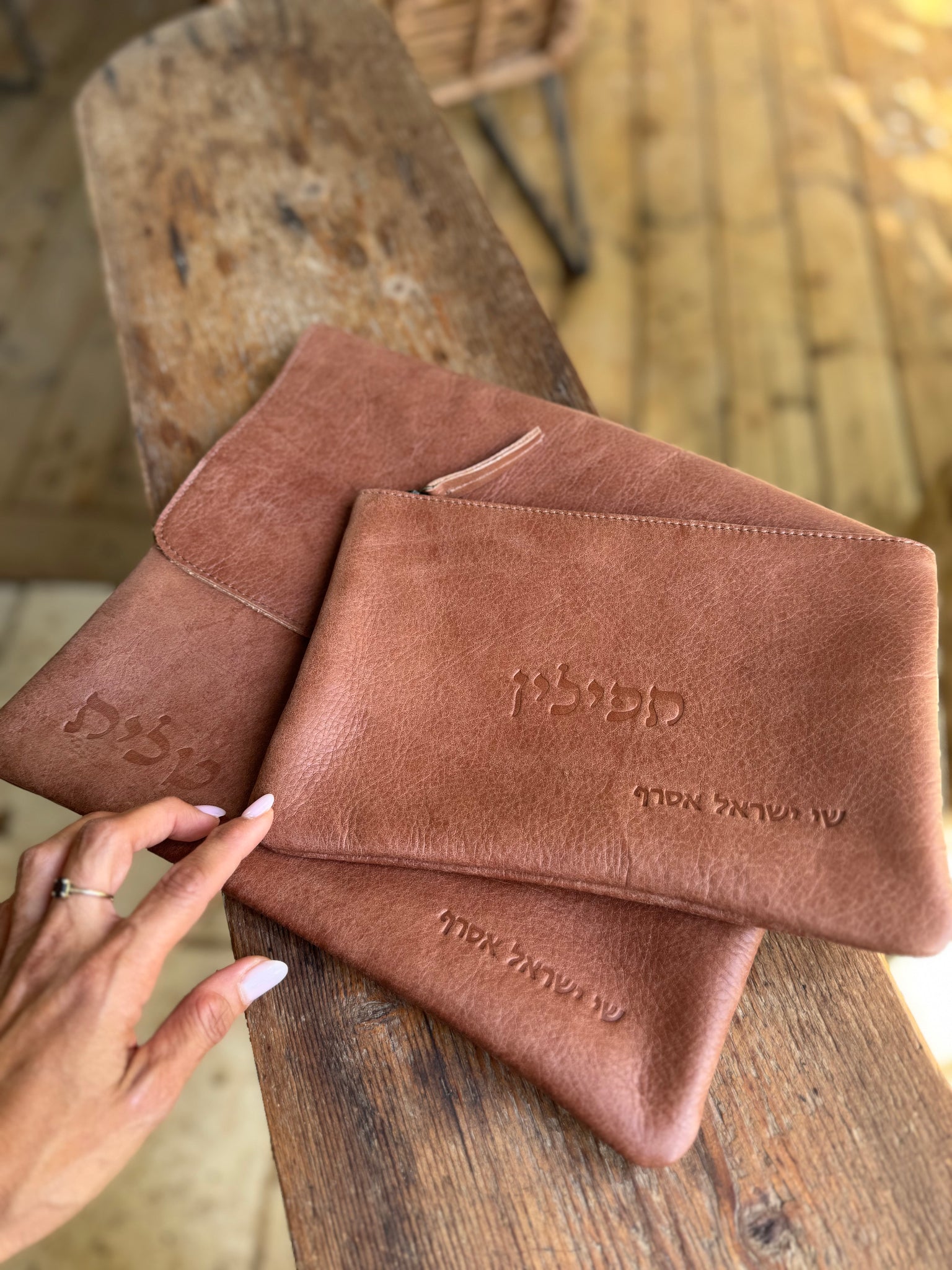 Set of Tallit and Tefillin Leather Cases.