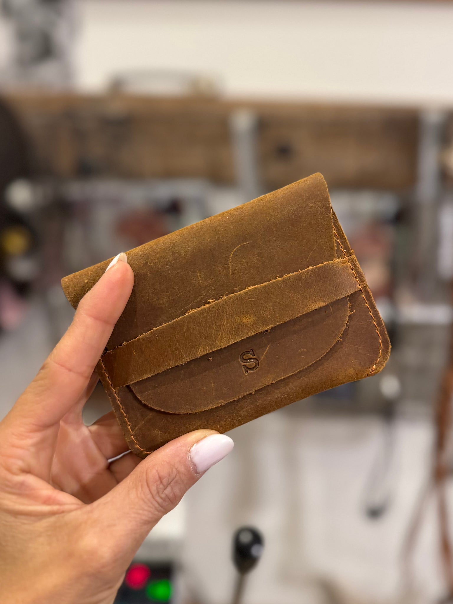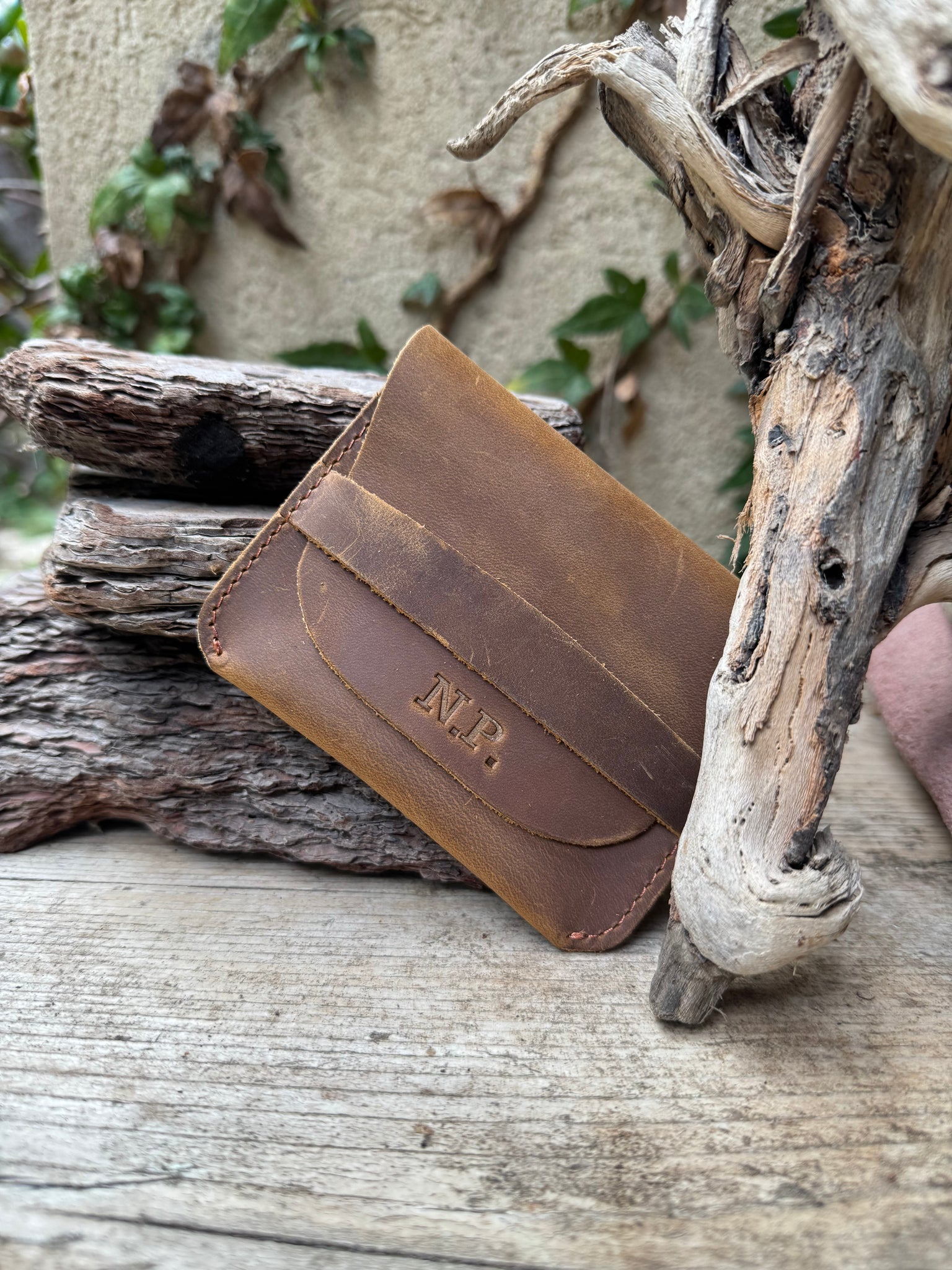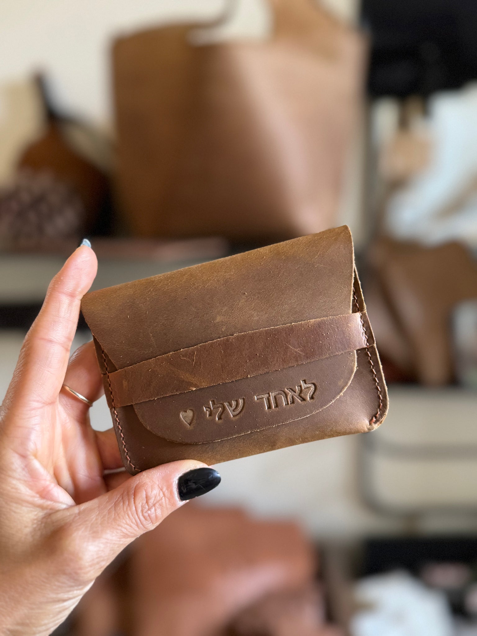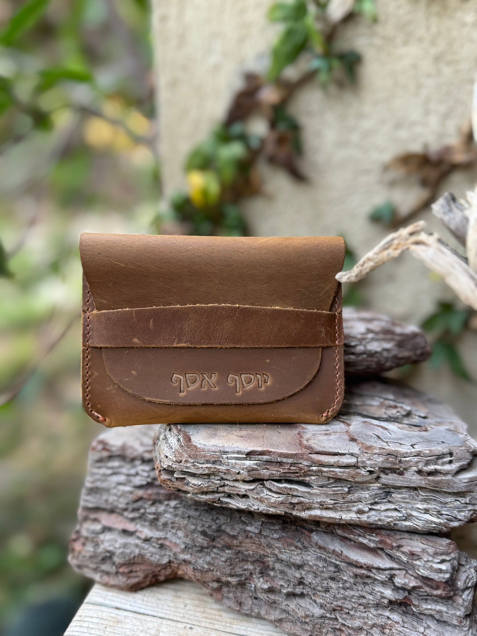 ארנק מינימליסטי, בעבודת יד מעור טבעי ואיכותי, בצבע חום אגוז חמים