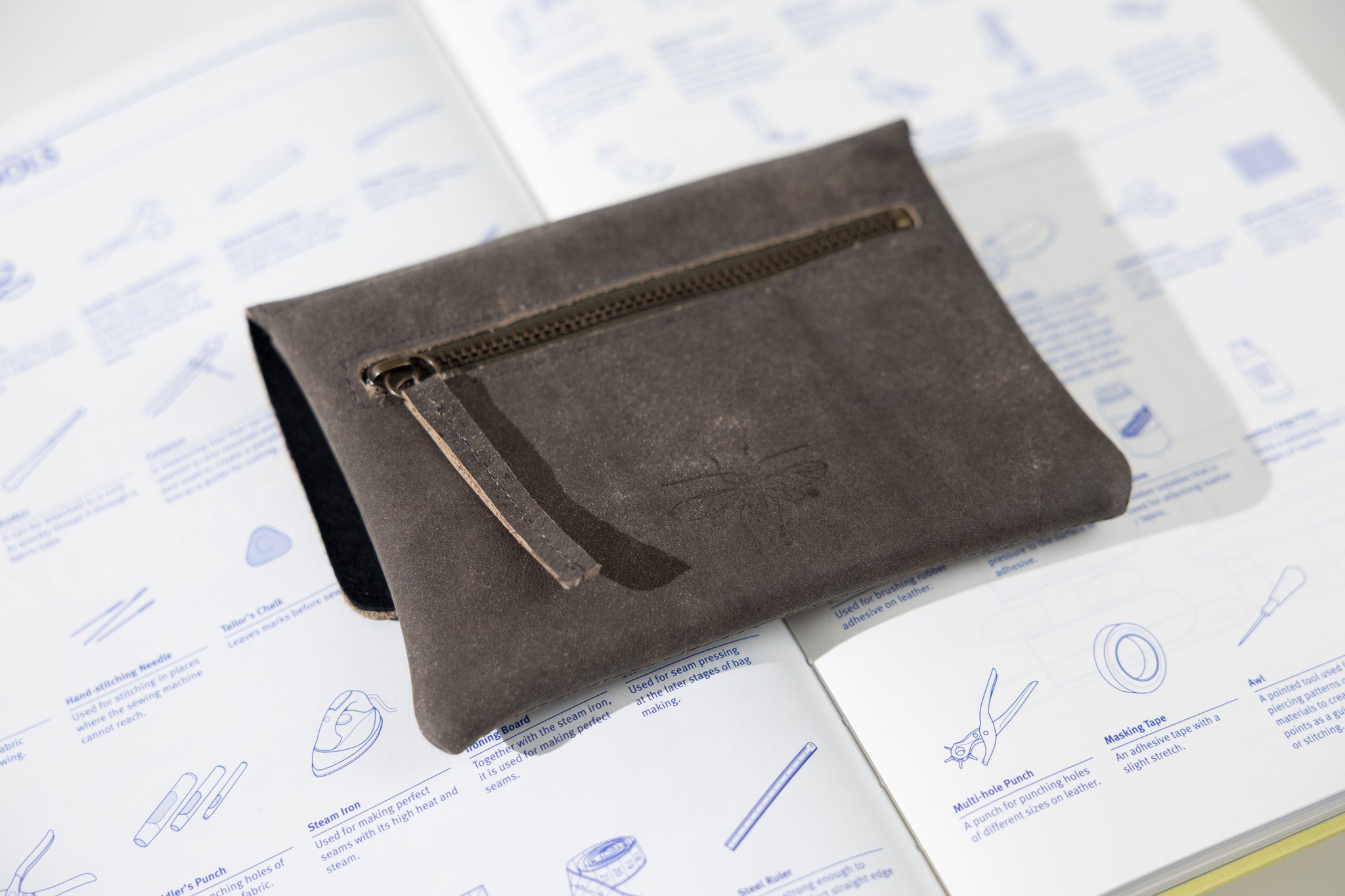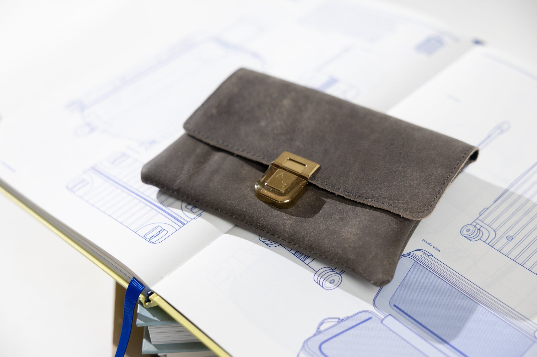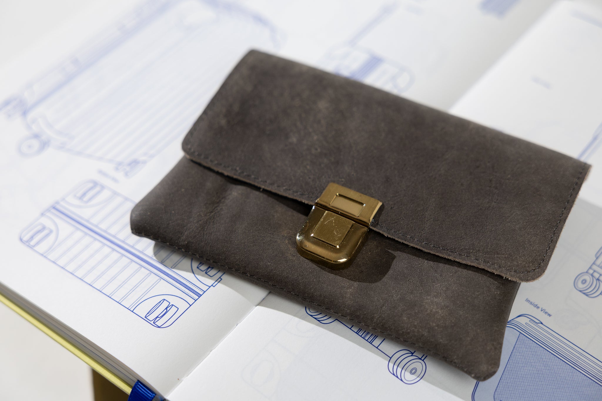 ארנק מעור אפור פחם עם מנעול וינטג' שוויצרי
